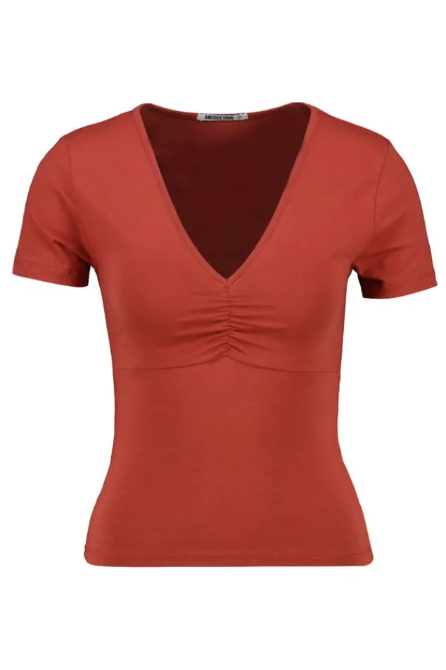 Zoek je leuke Dames T-shirt van America Today? Basic T-shirt Elly in kleur Terra is perfect te combineren met jouw stijl. Bekijk ons assortiment online | America Today ✓ 30 dagen retourrecht ✓ Betaal achteraf.
